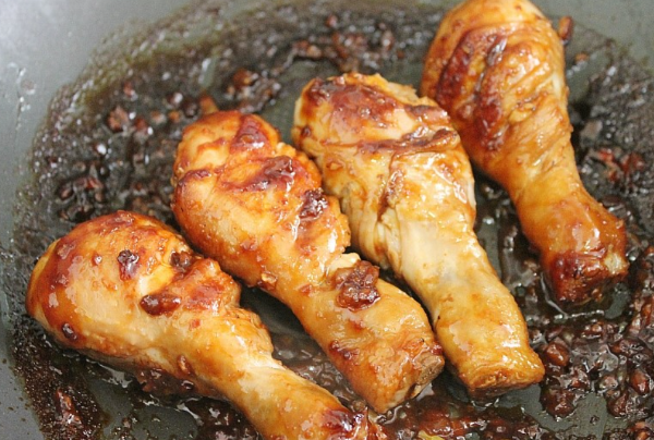 - 양념이 졸아들면서 닭다리에 윤기가 나면 불을 끕니다.